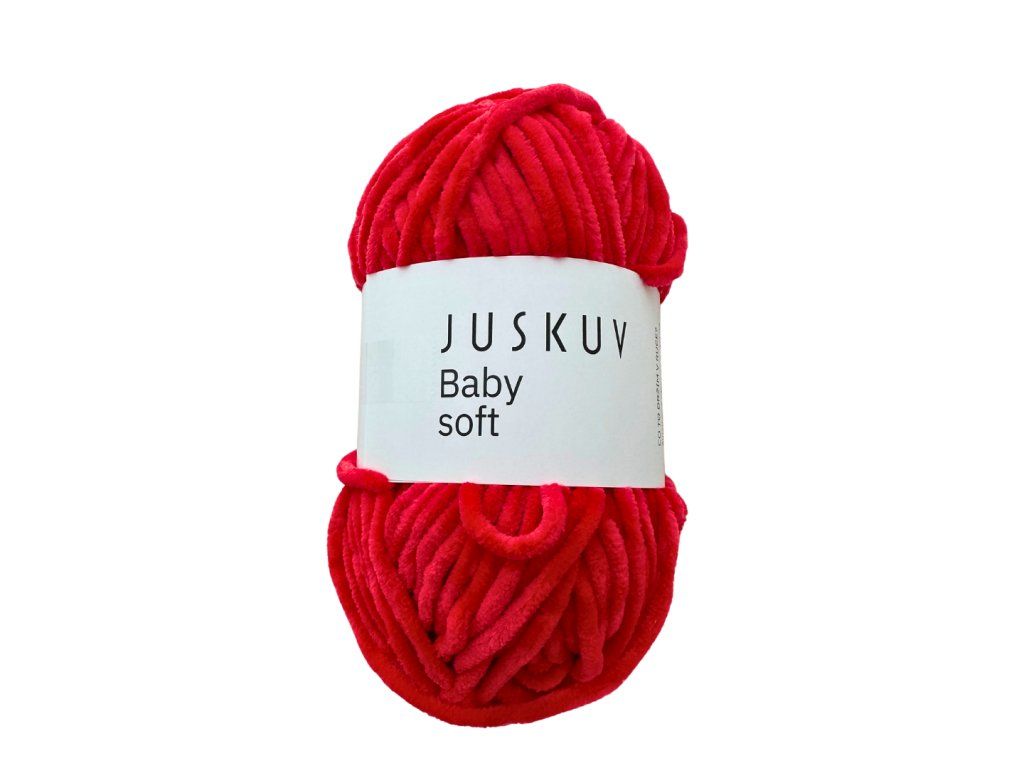 Juskuv Babysoft je krásně jemná žinylková příze pro háčkování i pletení. Hodí se na čepice pro děti i dospělé, svetříky, ale také na deky, polštáře a hračky. Výrobky jsou na dotek plyšové a práce s přízí je příjemná – pěkně přibývá a je šetrná k rukám.