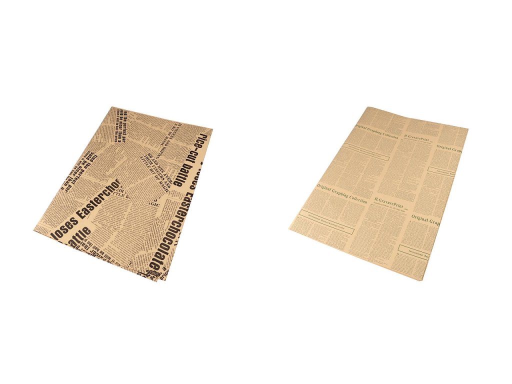 Dekorační papír s novinovým potiskem si zamilují příznivci vintage stylu. Potisk je oboustranný - obě strany mají stejnou barvu.Papír využijete k výrobě prostírání, kornoutů, k balení dárků i na scrapbooking, kde s ním můžete ozdobit pozvánky, přání, deníky, krabičky apod. Floristé jej používají na ozdobné manžety uvázaných pugétů kytic.