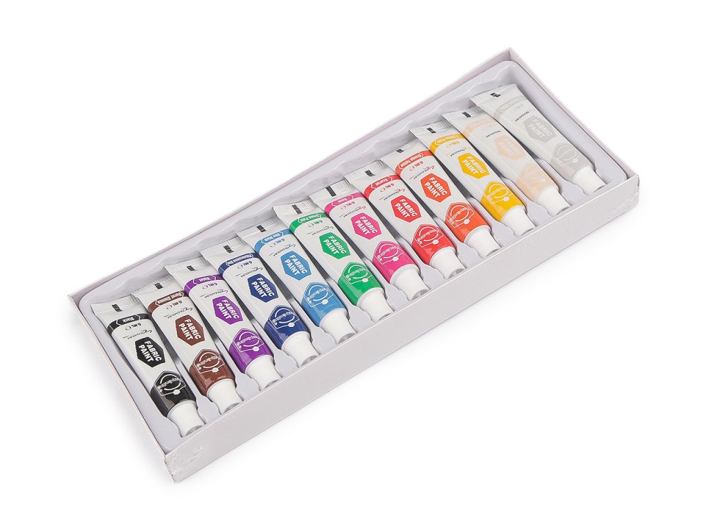 Sada barev na textil je vyrobená z nejnovějších materiálů na malování na mezinárodním trhu. Barvy jsou bezolovnaté a netoxické. Vyhovují normám ASTM D4236 a EN71-3. Pro dobré zdraví vás i vašich dětí je použití těchto barev na textil tou nejlepší volbou. V balení najdete 12 barevných odstínů v uzavíracích tubách o obsahu 6 ml.Využijete je k ozdobení trička, mikiny, tašky, tenisek nebo bytových doplňků jako jsou ubrusy, polštáře, závěsy apod. Dá se s nimi malovat ručně, šablonovat i tisknout.