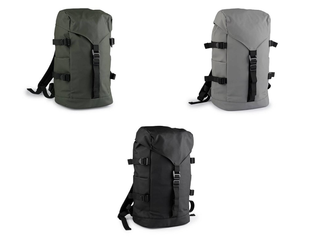 Velký textilní batoh se hodí především na výlety, do posilovny nebo do školy. Má pogumovaný, nepromokavý povrch, který zaručuje snadnou údržbu. Uzavírá se na klopu s poutkem a kovovým háčkem s plynulou regulací délky. Pod klopou najdete zdrhovadlo se šňůrkou a posuvnou brzdičkou. Uvnitř má batoh polstrovanou kapsu. Po stranách batohu jsou kapsy na láhve a různá poutka na upevnění dalších předmětů. Nahoře má batoh praktické poutko na pověšení, polstrované nastavitelné popruhy s plynulou regulací délky a polstrovaná záda.Doplňkové parametry
