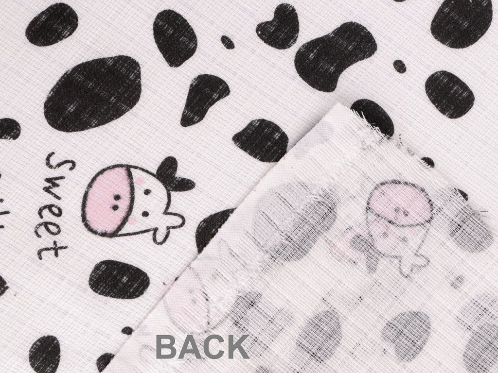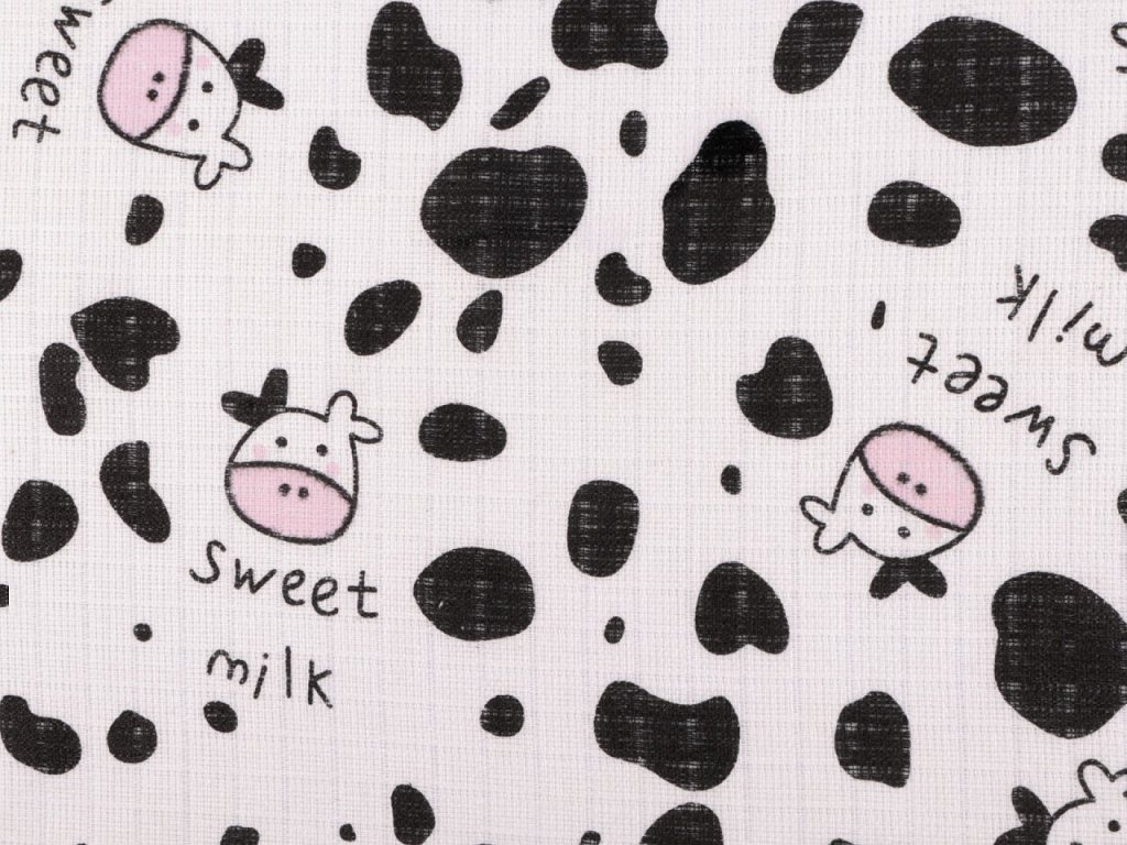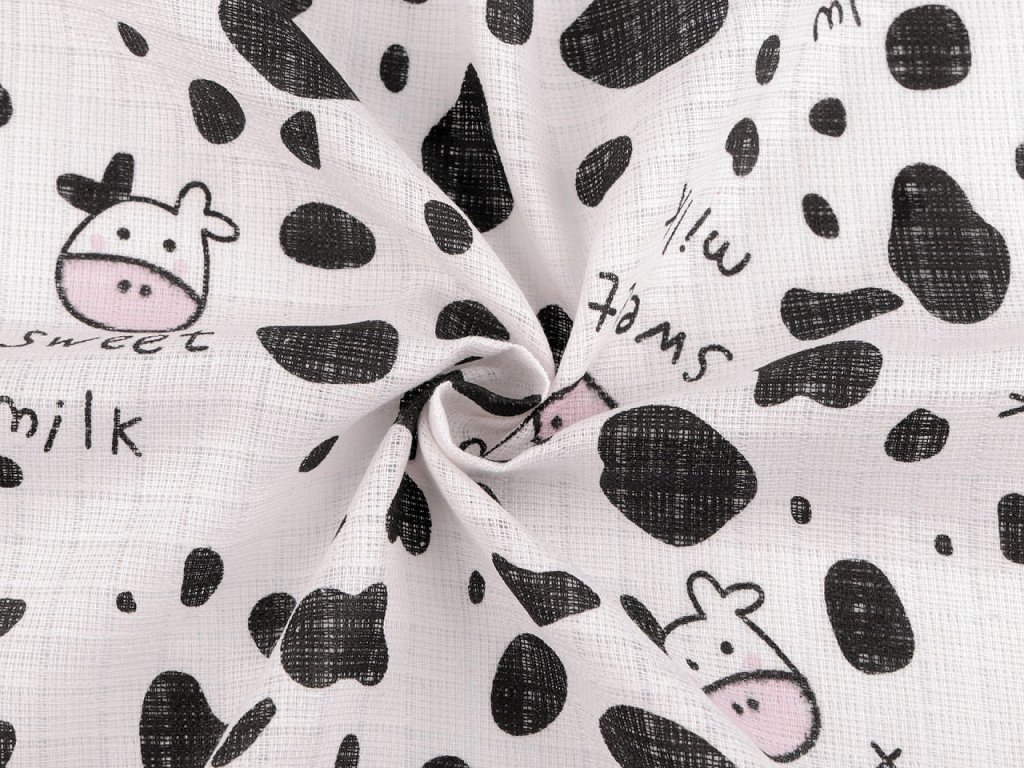 Bavlněnou plenkovinu s veselými obrázky kraviček využijete na šití plenek, baldachýnů, bryndáčků apod. Je prodyšná, příjemná na dotek.Doplňkové parametry