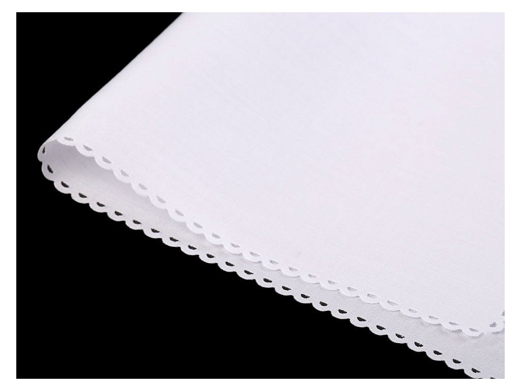 Bavlněný kapesník je vhodný pro pány. Bude skvělým dárkem do tanečních.Okraje má ozdobně lemované drobnými obloučky a perforací.