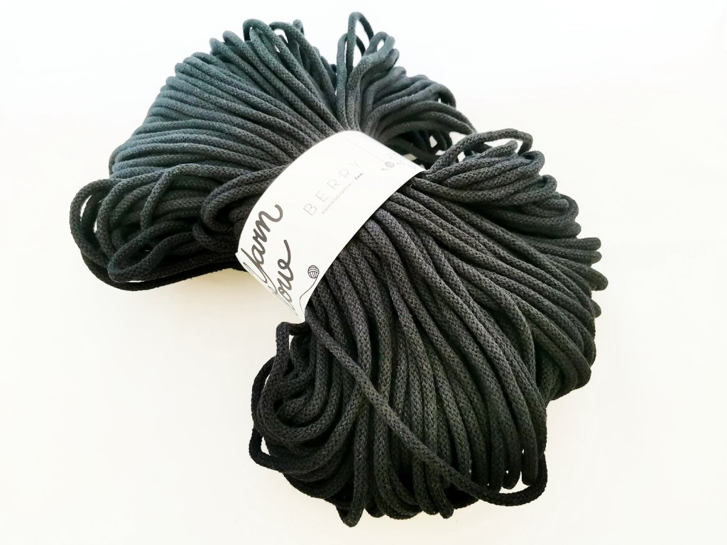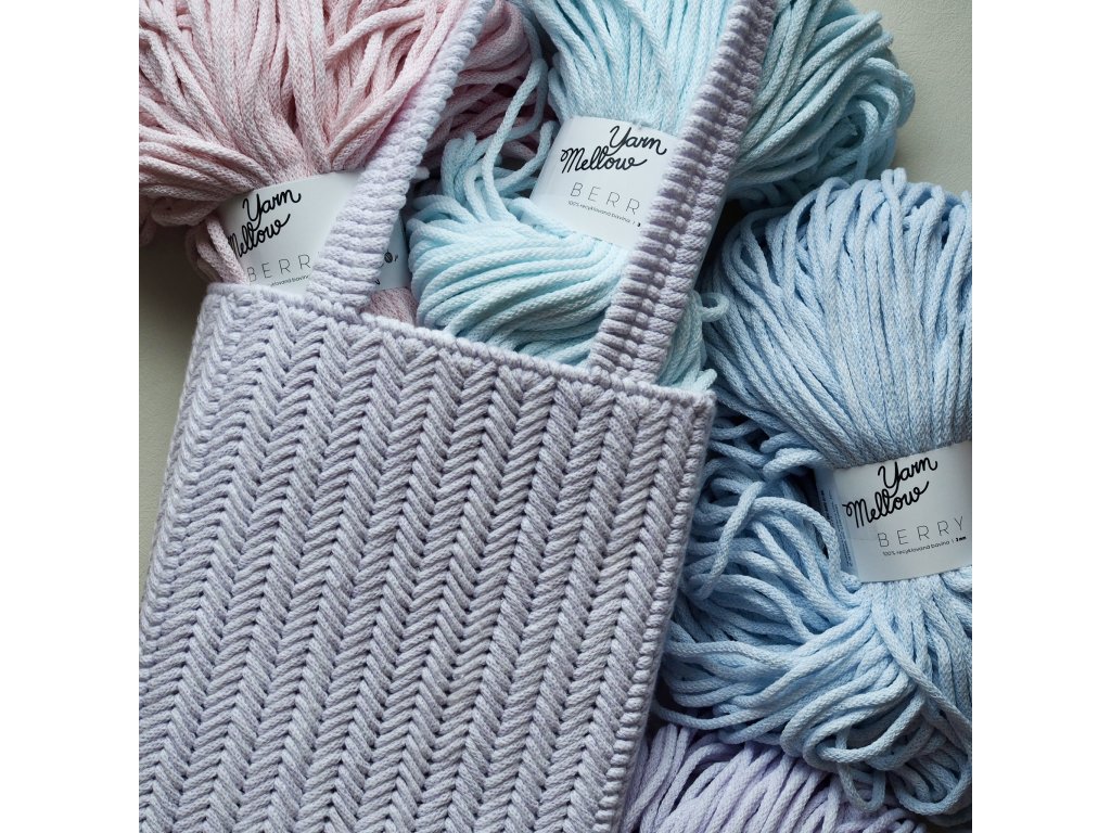 Šňůry Berry od značky YarnMellow jsou kulaté šňůry z recyklované bavlny, včetně jádra. Díky tomu si krásně drží tvar a velmi dobře se s nimi pracuje.