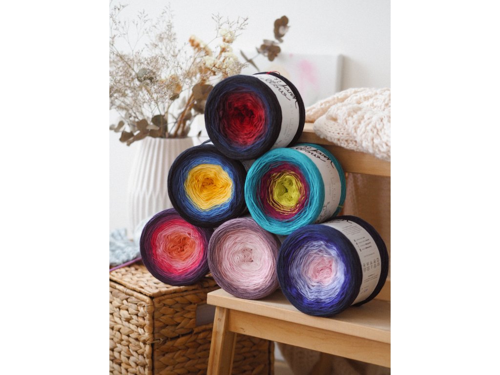 Každé klubíčko je originál, protože jsou motána v České Republice, ručně a s láskou. Z toho důvodu se v klubíčku mohou vyskytnout drobné uzlíky (nejen při přechodu barvy), ale ty jsou ve finálním výrobku téměř neviditelné. Doba dodání těchto klubíček může být až 7 dní.