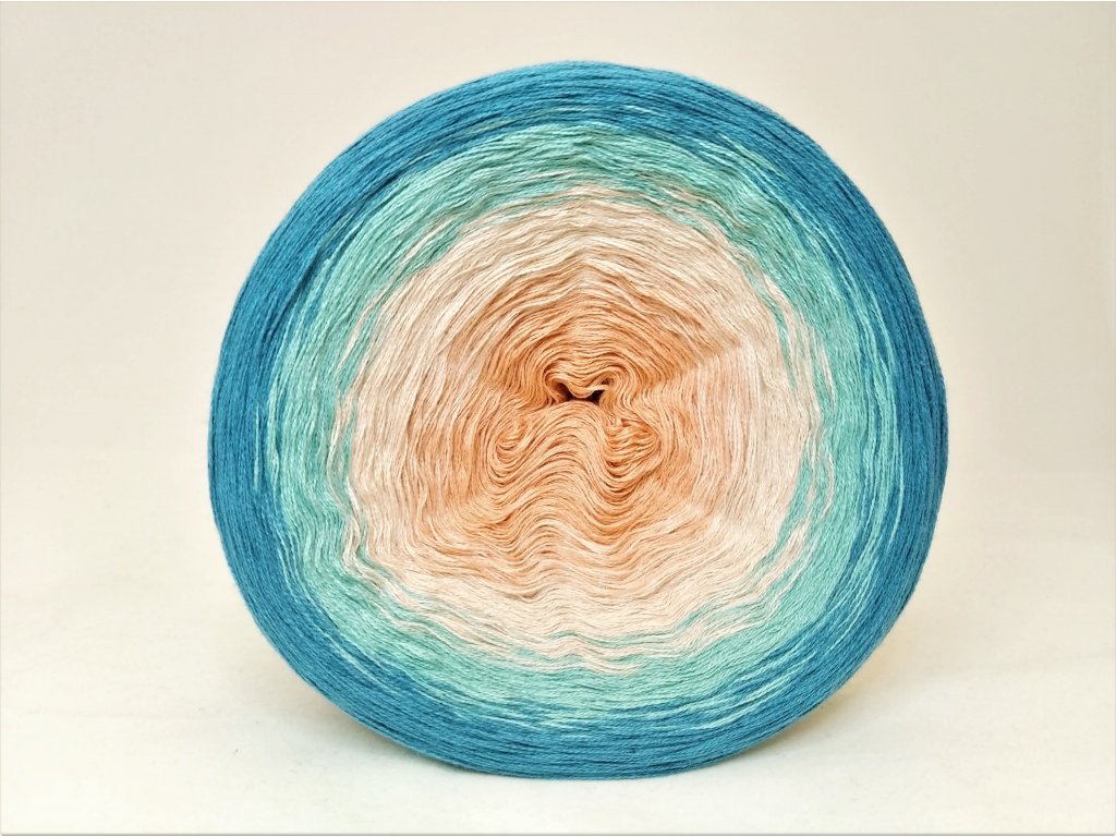 Luxusní, ručně vyrobené duhové klubíčko s jemnými přechody, ze kterého vzniknou lehké a vzdušné modely bez zbytečného sešívání. Délka 1500 m znamená jedno klubko pro velký šátek, šaty, sukni nebo třeba deku do kočárku.