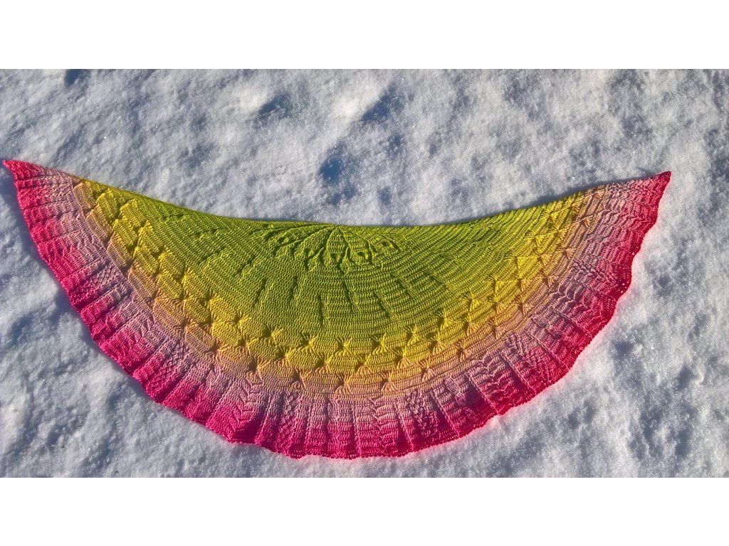 Luxusní, ručně vyrobené duhové klubíčko s jemnými přechody, ze kterého vzniknou lehké a vzdušné modely bez zbytečného sešívání. Délka 1500 m znamená jedno klubko pro velký šátek, šaty, sukni nebo třeba deku do kočárku.