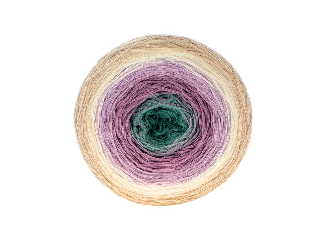 Luxusní, ručně vyrobené duhové klubíčko s jemnými přechody, ze kterého vzniknou lehké a vzdušné modely bez zbytečného sešívání. Délka 1500 m znamená jedno klubko pro velký šátek, šaty, sukni nebo třeba deku do kočárku.