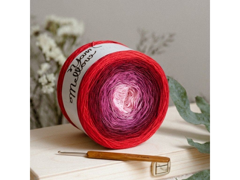 - Volitelný lurex – zlatý, stříbrný nebo tajemná třpytivá nitka v hlavní barvě klubíčka.