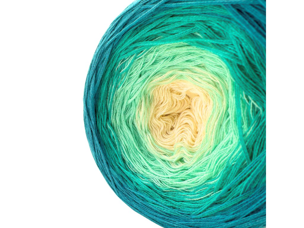 Luxusní, ručně vyrobené duhové klubíčko s jemnými přechody, ze kterého vzniknou lehké a vzdušné modely bez zbytečného sešívání. Délka 1000 m znamená jedno klubko pro šálu, tílko, nebo sukni pro menší holky.