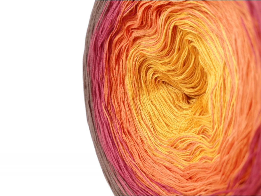 Luxusní, ručně vyrobené duhové klubíčko s jemnými přechody, ze kterého vzniknou lehké a vzdušné modely bez zbytečného sešívání. Délka 500 m znamená jedno klubko pro šálu, tílko, nebo sukni pro menší holky.