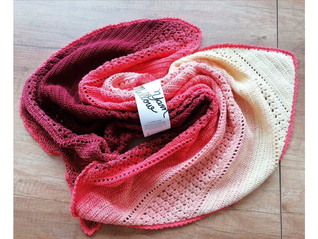 Luxusní, ručně vyrobené duhové klubíčko s jemnými přechody, ze kterého vzniknou lehké a vzdušné modely bez zbytečného sešívání. Délka 500 m znamená jedno klubko pro šálu, tílko, nebo sukni pro menší holky.