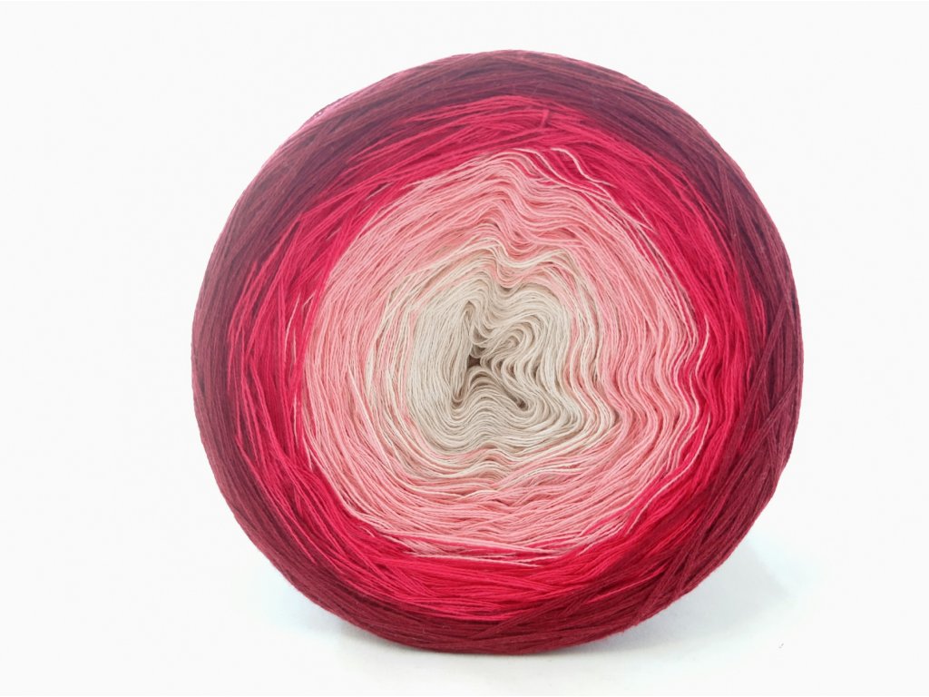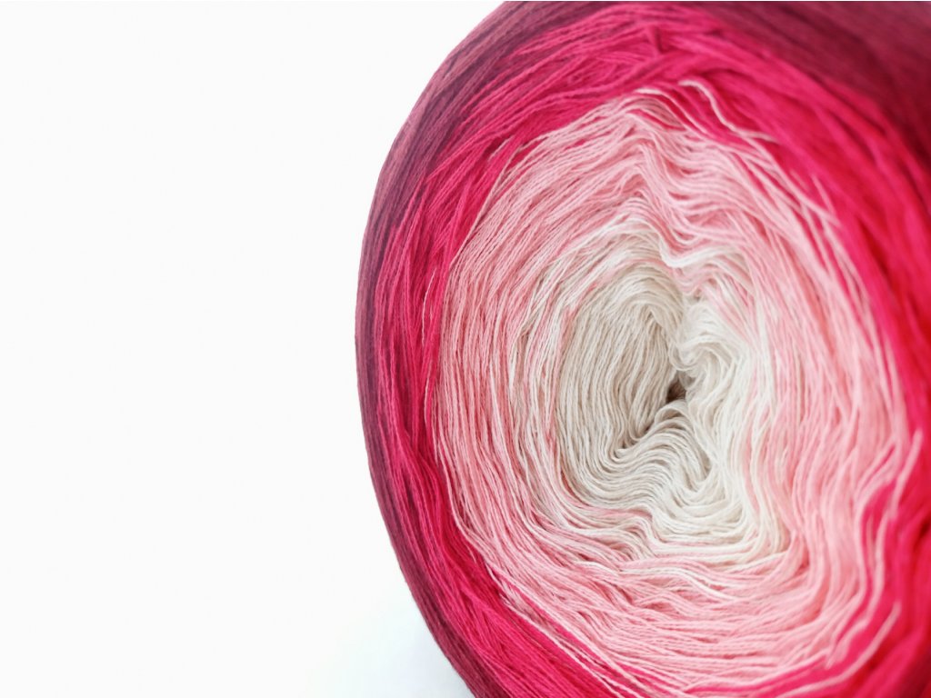 Luxusní, ručně vyrobené duhové klubíčko s jemnými přechody, ze kterého vzniknou lehké a vzdušné modely bez zbytečného sešívání. Délka 1500 m znamená jedno klubko pro velký šátek, šaty, sukni nebo třeba deku do kočárku.