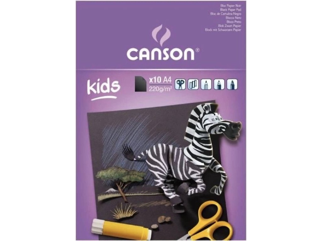 Černý papír Canson Kids blok A4 220g, 10 listů