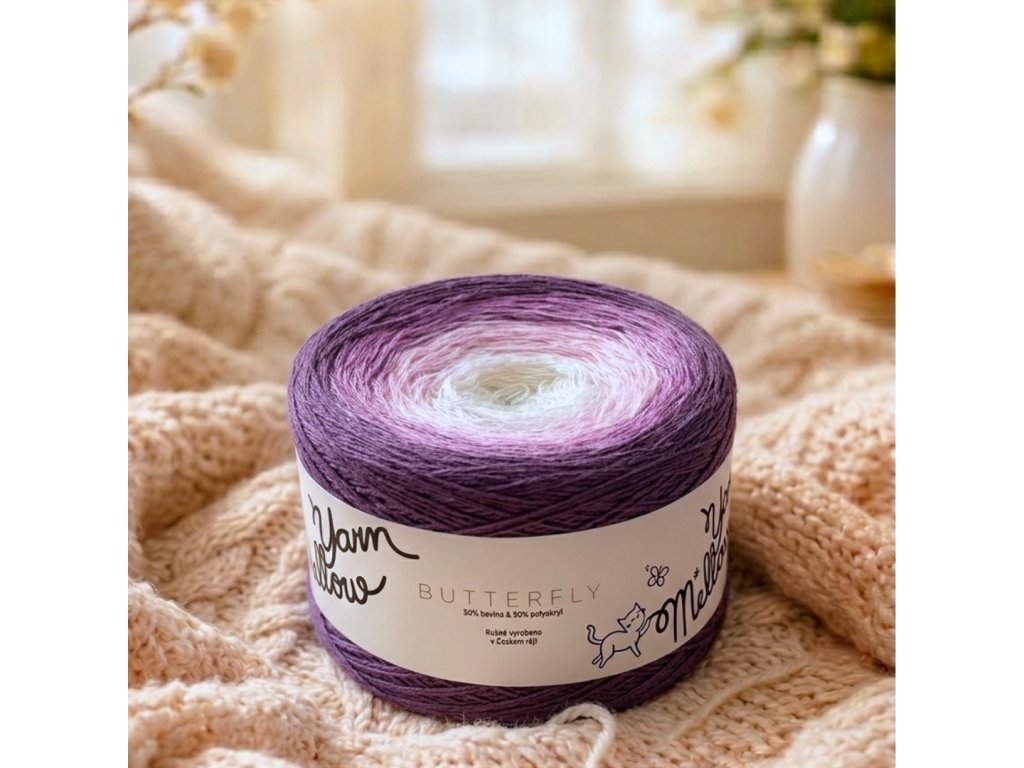 Každé klubíčko YarnMellow Butterfly vzniká v Českém Ráji a dnes už jich vyrobíme tolik, že jsme v Česku v tomto oboru největší. Nitě navazujeme ručně a díky unikátní technologii je jedno klubko jako druhé- pevně navinuté, s pravidelnými přechody barev a s téměř neviditelnými uzlíky.