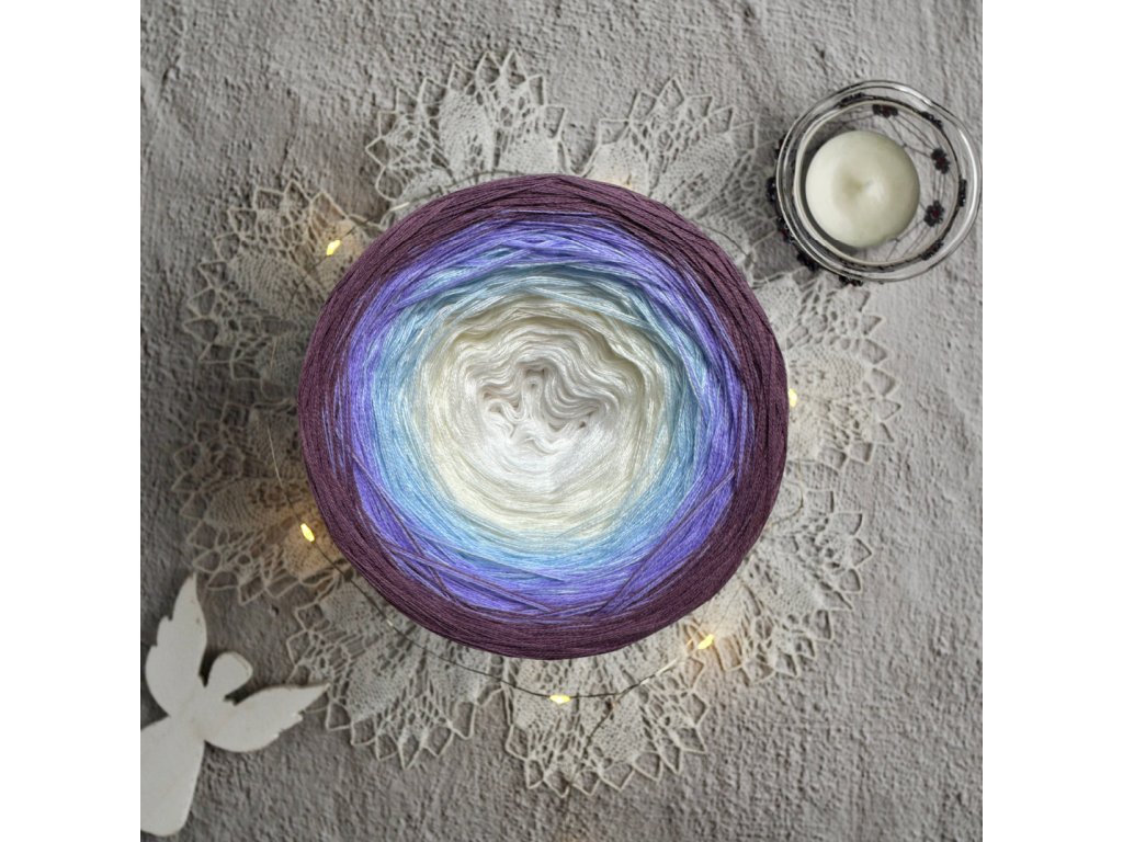 Luxusní, ručně vyrobené duhové klubíčko s jemnými přechody, ze kterého vzniknou lehké a vzdušné modely bez zbytečného napojování. Délka 1500 m znamená jedno klubko pro velký šátek, šaty, sukni nebo třeba deku do kočárku.