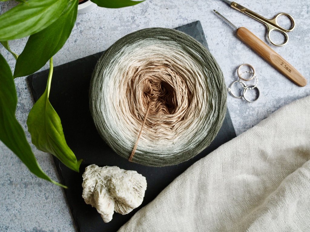 - Volitelný lurex – zlatý, stříbrný nebo tajemná třpytivá nitka v hlavní barvě klubíčka.