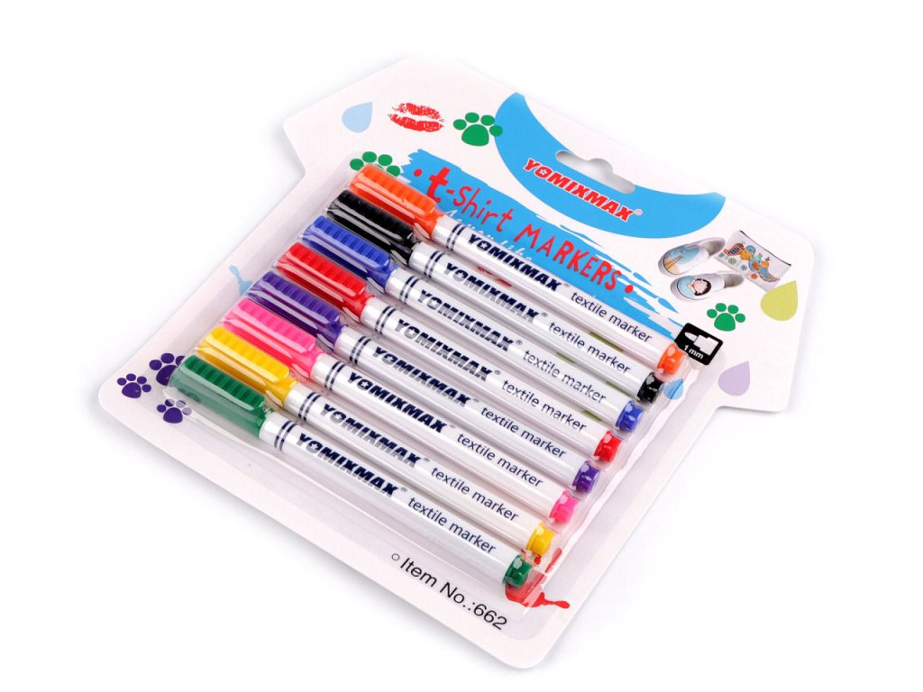 Sada fixů (popisovačů) na textil potěší děti i dospělé svou pestrou škálou barev. Jsou voděodolné, ihned zasychají. Nemusí se zažehlovat. Jsou vhodné na světlý textil. Můžete je použít na většinu látek, nejvhodnější je bavlna. Kvůli zafixování barvy doporučujeme prát nejdříve po 24 hodinách na 30°C.Netoxické, bez zápachu. Mají hrot se šířkou stopy cca 1 mm.