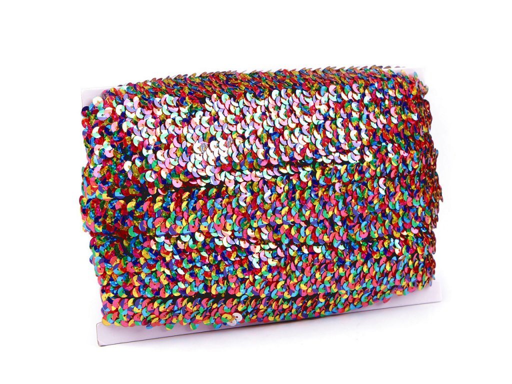 Elastický flitrový prýmek je velice efektní. Usnadní vám práci s jednotlivým našíváním flitrů. Flitry jsou připevněné na tenké pruženky cik - cak způsobem, působí bohatým dojmem. Po maximálním natažení pruženky se seřadí do dvou řad. Průměr flitrů je 6 mm.Použití: Flitry vyžijete převážně jako ozdobu na plesové či společenské šaty, halenky nebo sukně. Hodí se jako praktický prvek na ozdobení tanečních a krasobruslařských trikotů. S prýmkem si můžete vyrobit i originální čelenku do vlasů.
