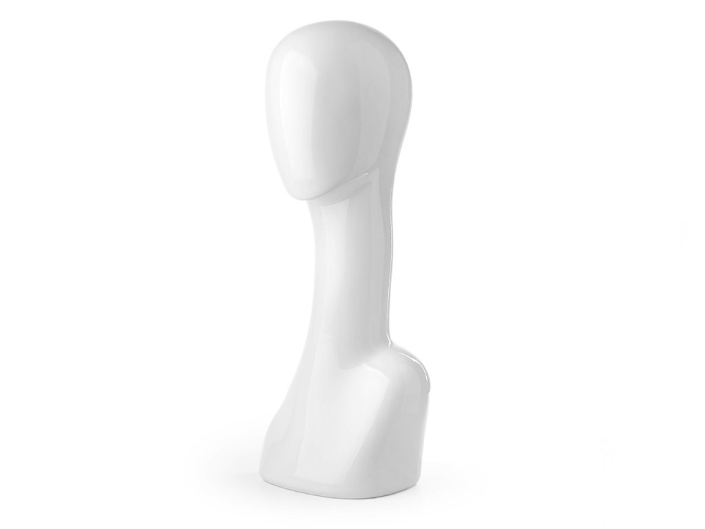 Dámská aranžérská hlava vyniká moderním designem. Plast, ze kterého je vyrobená, je kvalitní, pevný a s lesklým povrchem. Má dobrou stabilitu. Uvnitř je dutá.Na aranžérské hlavě vyniknou čepice, klobouk, paruky, šátky apod. Může posloužit nejen k aranžování, ale také jako dekorační prvek moderního interiéru.