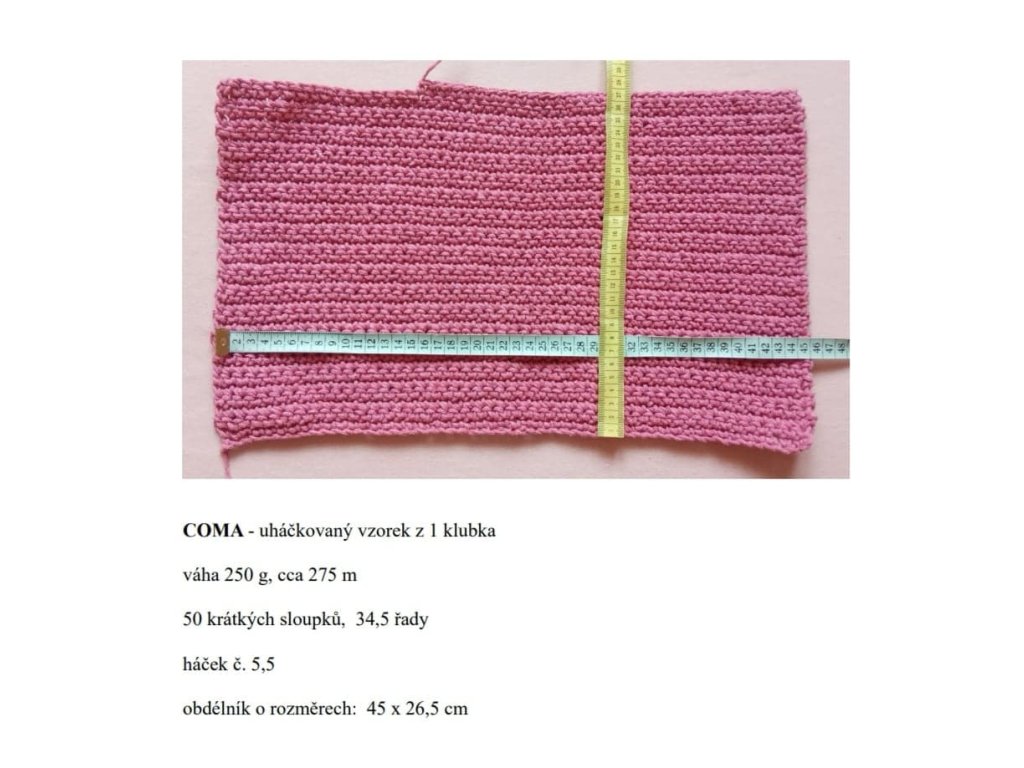 - Hmotnost klubka: cca 250 g