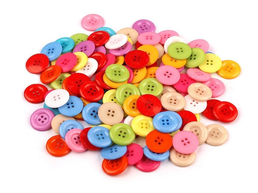 Čtyřdírkové knoflíky vás zaujmou svou pestrou barevností. Vesele oživí oděvy, doplňky nebo různé dekorace. Využijete je i na zdobení foto rámečků, alb, pozvánek, přáníček apod. Jsou vhodné také na výrobu různých dekorací.Knoflíky jsou balené v sáčku.