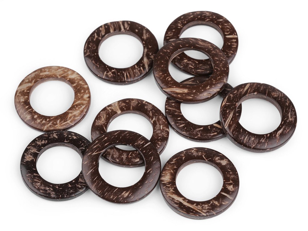 Kokosové kroužky využijete k výrobě uch na kabelky a tašky, k ozdobení kabelek i na výrobu macramé dekorací či pásků.Jelikož se jedná o přírodní materiál, mají kroužky různou tloušťku.