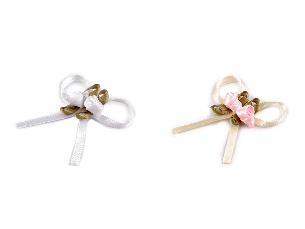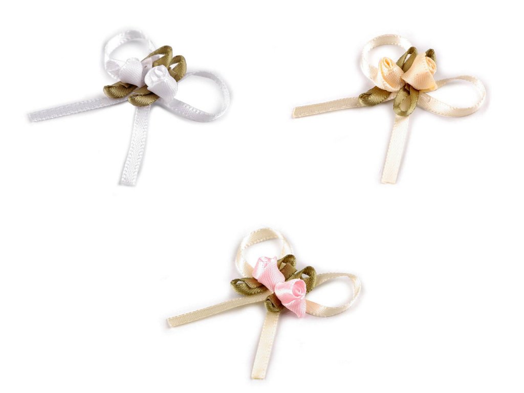 Mašlička s růžičkami je velice oblíbená, slouží především k ozdobení klopy svatebčanů. Mašlička je ze saténové stužky, je ozdobená párem růžiček. Mašličky můžete použít také k aranžování různých svatebních dekorací, k ozdobení svatebních oznámení, pozvánek, krabiček apod. Vyniknou i na módních doplňcích jako jsou klobouky, čelenky, kabelky, boty apod.Mašličky nemají špendlík k připíchnutí.