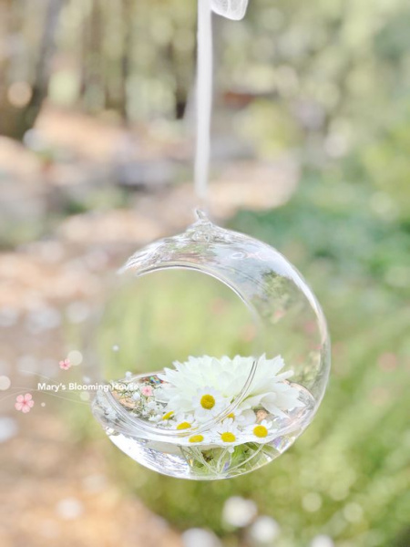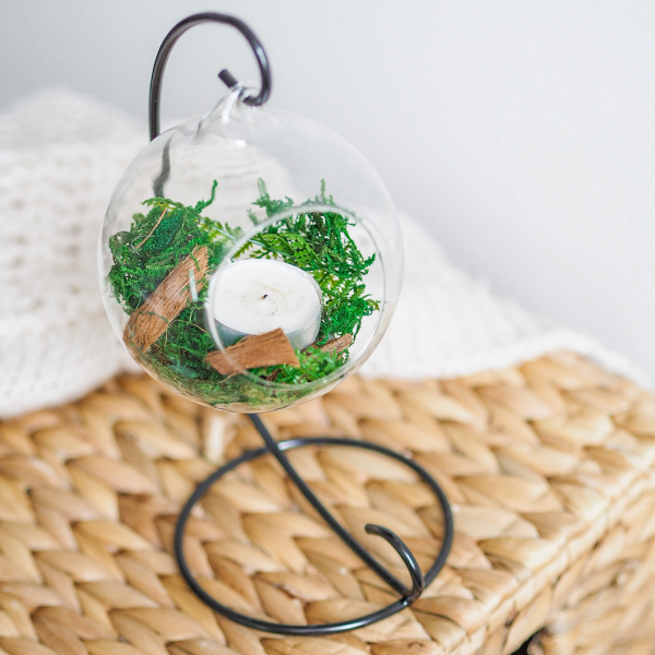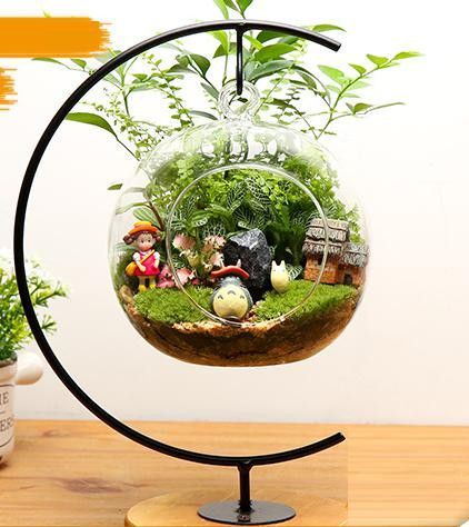 Skleněnou nádobu zvanou aerárium. To můžete sehnat i v jiném tvaru než je koule. Může být položená na podložce nebo zavěšená, třeba na kovovém stojánku, taktéž z naší nabídky.