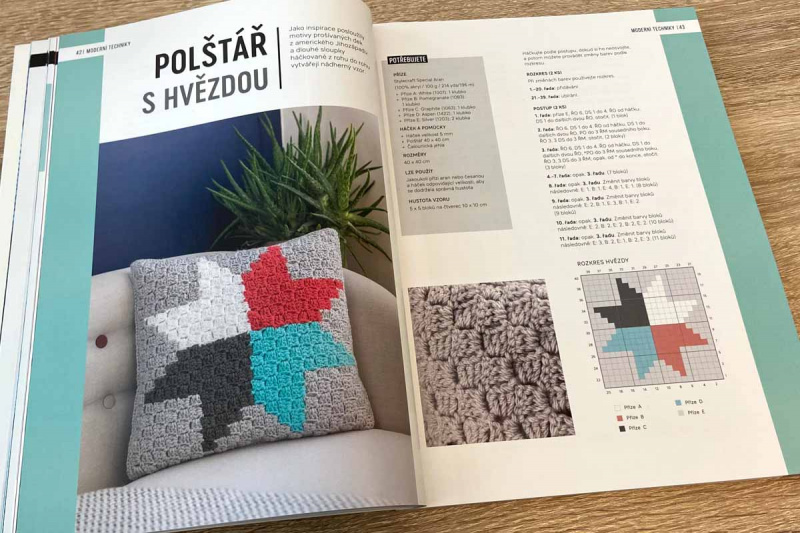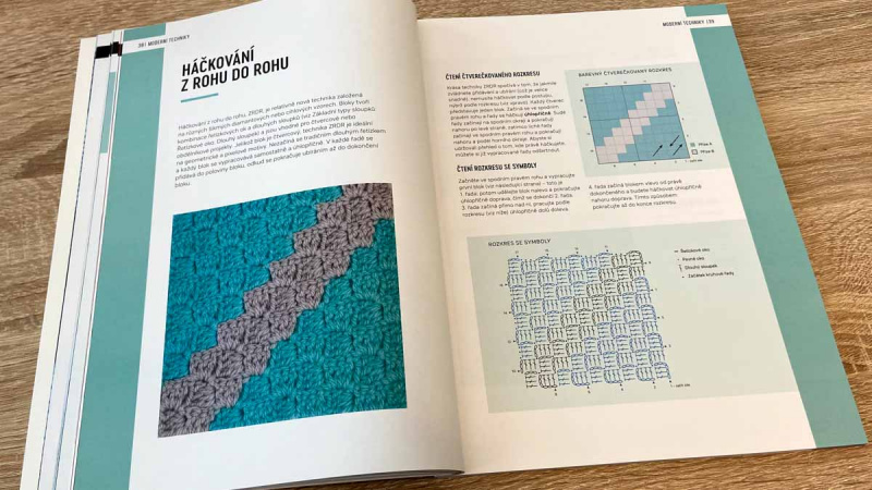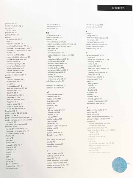 Dále zde najdete perfektně popsané moderní techniky a nechybí ani několik návodů - například na potah na polštářek, háčkovanou lamu, čepici, nákrčník, tašku, podtácky a mnoho dalšího (soupis všech projektů najdete v galerii obrázků - v Rejstříku pod "projekty").