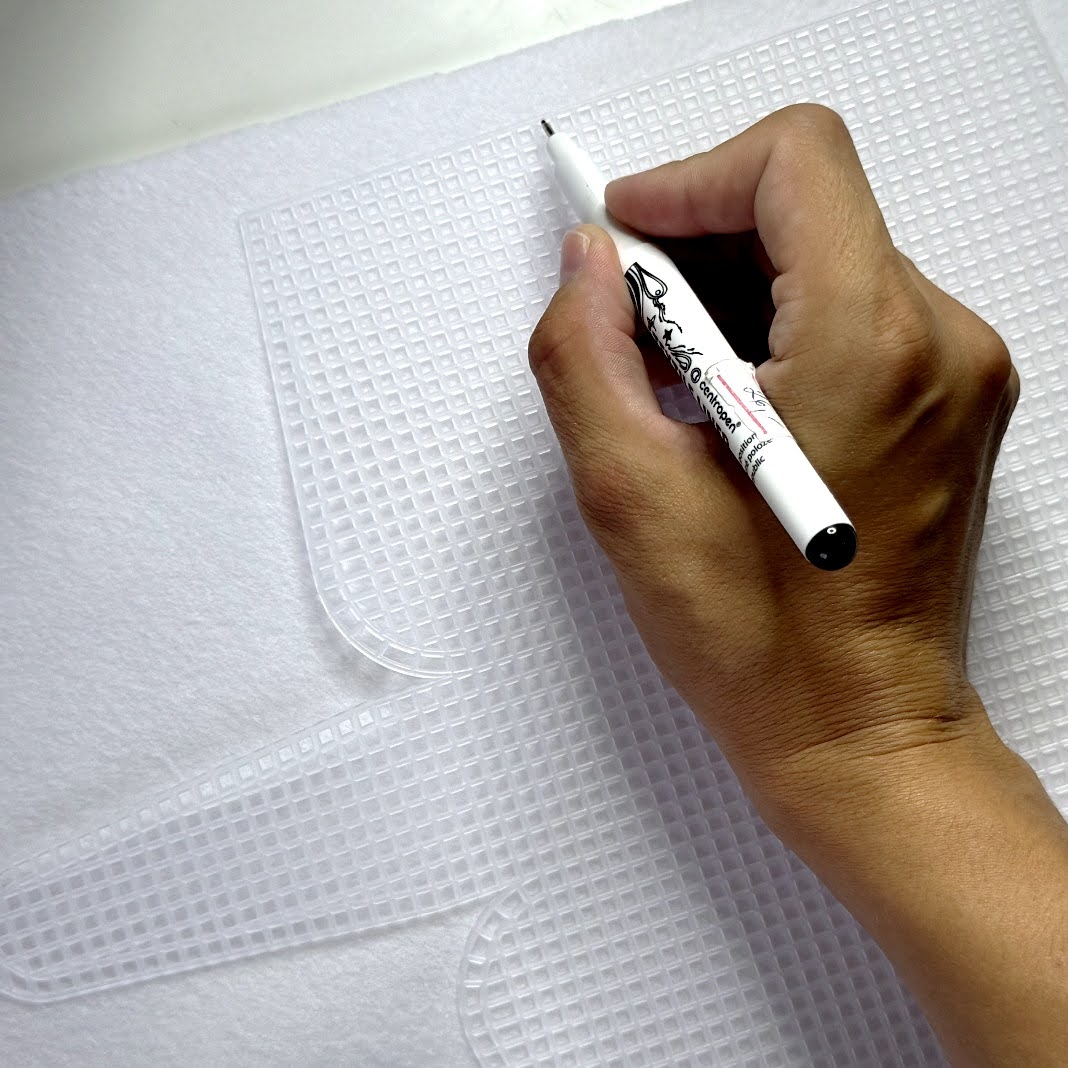 Nejprve si obkreslete kanavu na látku a vystřihněte.