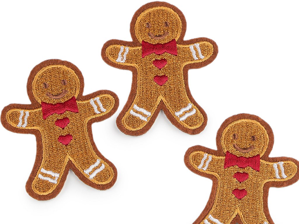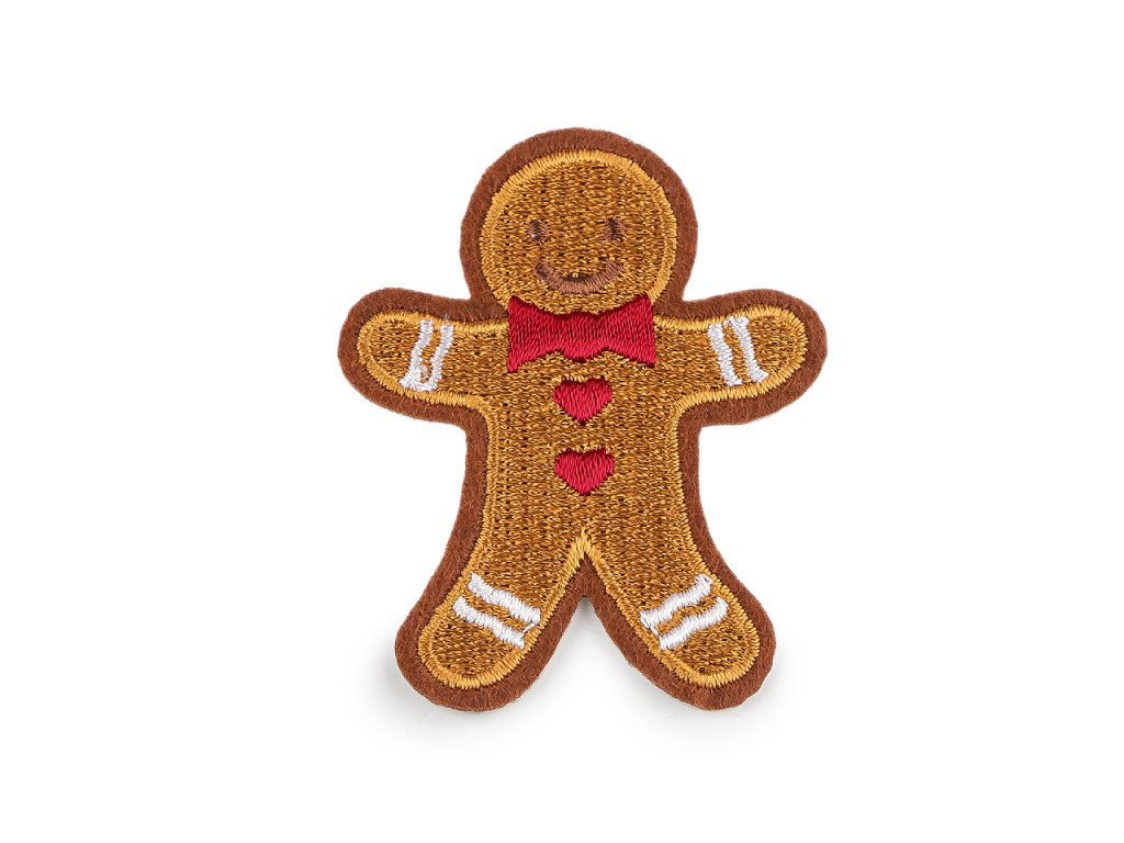 Nažehlovačka ve tvaru perníčku je hravý a veselý doplněk, který okamžitě přitáhne pozornost. Má kvalitní provedení s celoplošnou výšivkou. Vynikne nejen na zimním oblečení, ale i na doplňcích jako jsou čepice, šály, tašky a batohy. Skvěle se hodí například na vánoční svetry nebo zástěry, chňapky i prostírání.Použití: Textilní nažehlovačka vynikne jako ozdoba na oblečení a módních doplňcích jako jsou čepice, tašky a batohy. Slouží i k opravě dírek v oblečení.