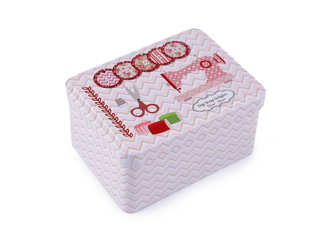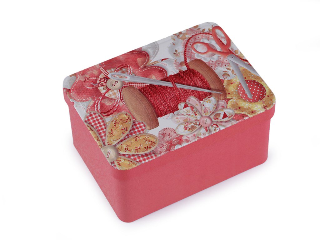 Plechovou krabičku využijete na drobnosti. Její švadlenkovský design ji předurčuje na uložení šicích potřeb jako jsou knoflíky, jehly, nitě, zkrátka všechny drobnosti, které švadlenka potřebuje. Víko je odklápěcí.Doplňkové parametry