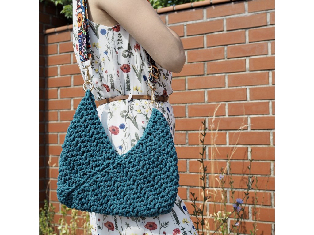 Nastavitelný ramenní popruh má krásný moderní design a je doplněný o kovové karabinky a posuvník.