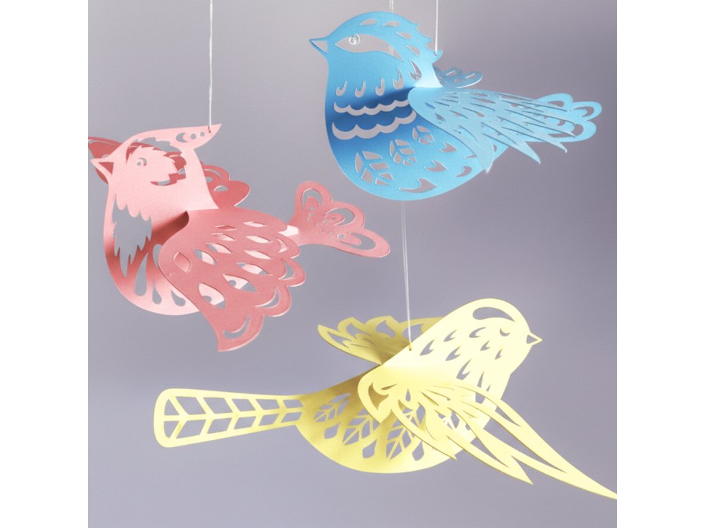 Sada 3D papírových ptáčků, pastelové barvy