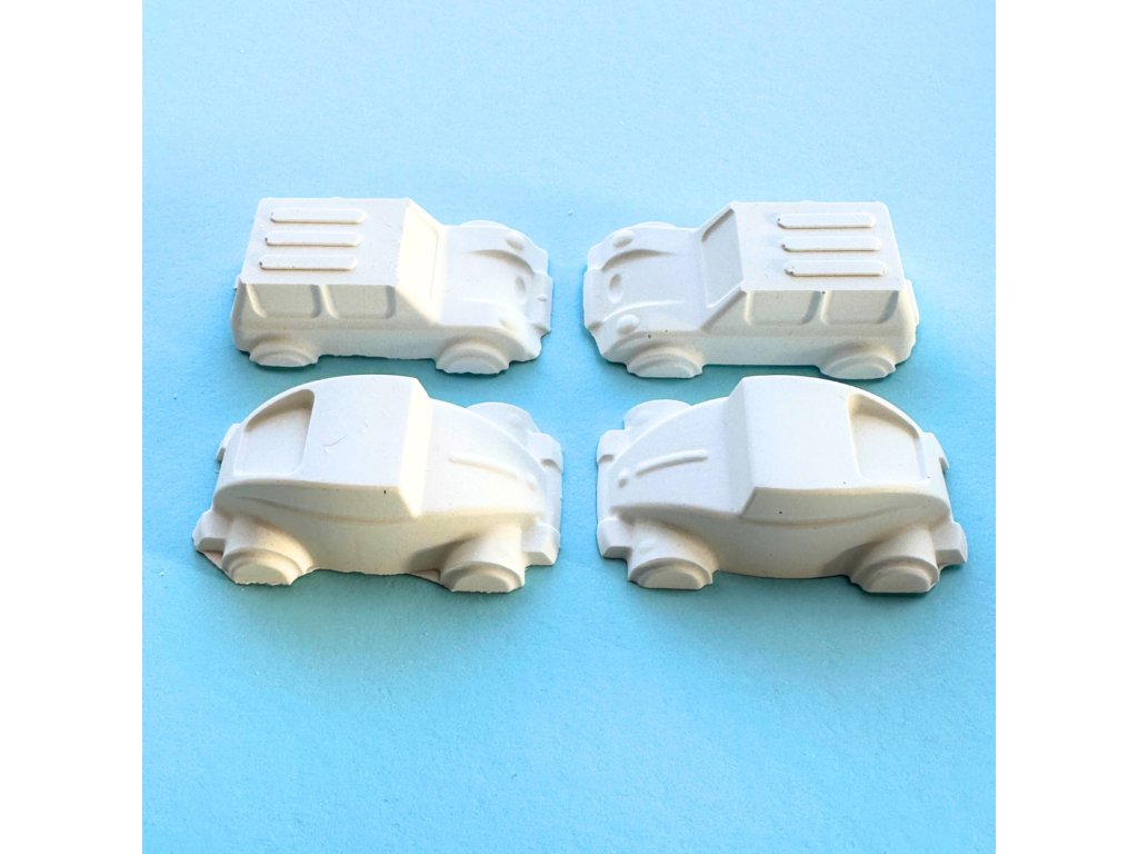 V sadě jsou 4 auta o velikosti 6x3x2 cm a vyrábíme je pro vás v Jičíně.