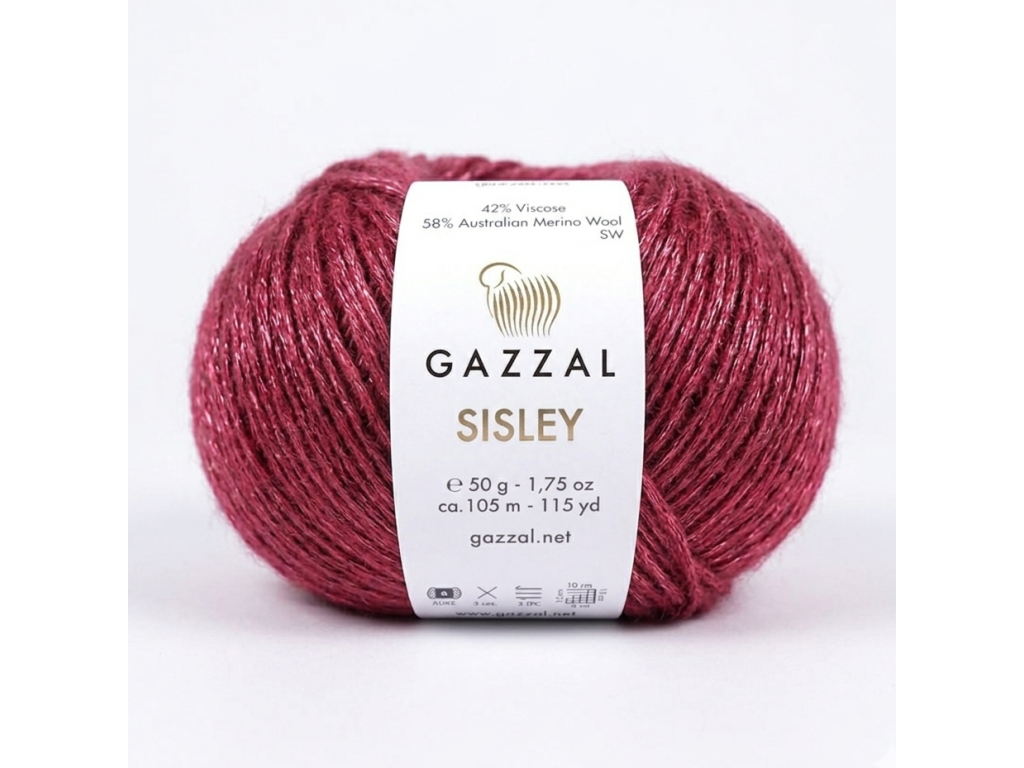 Příze Sisley je hebká, hřejivá a extrémně lesklá – ideální na svetry, čepice i šály, které potěší na dotek i pohled.