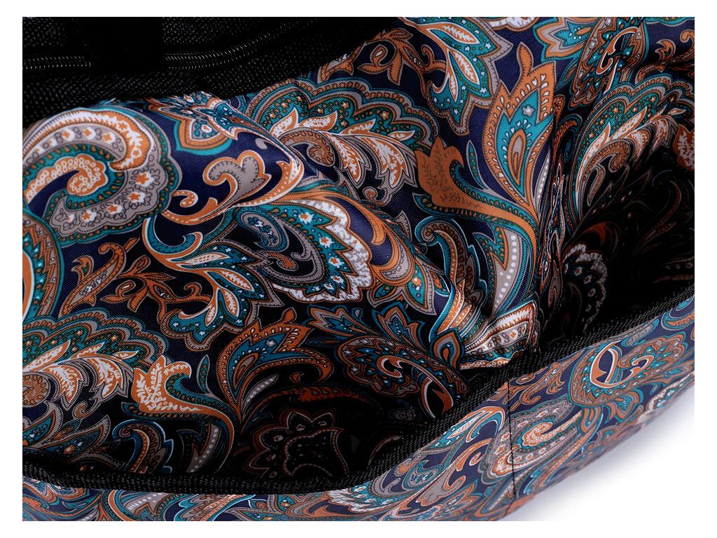 Taška nemá obal, díky důmyslných zipů u dna se zapíná sama do sebe.