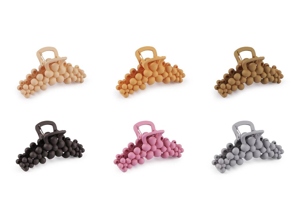 Skřipec do vlasů s designem bublinkových květů vytvoří zajímavý účes během chvilky. Ocení jej i ženy, které nemají rády gumičky. Drží přesně na místě díky svému silnému stisku a zoubkům. Má matný povrch.Doplňkové parametry