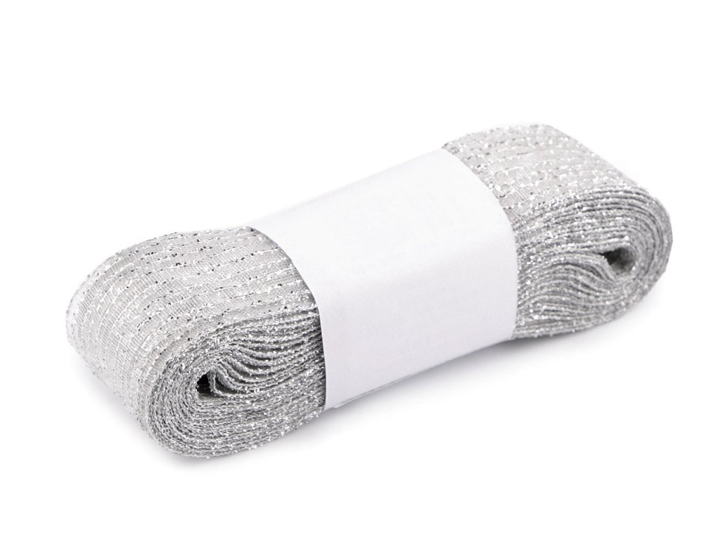 Dekorační stuha s lurexem šíře 40 mm síťovaná